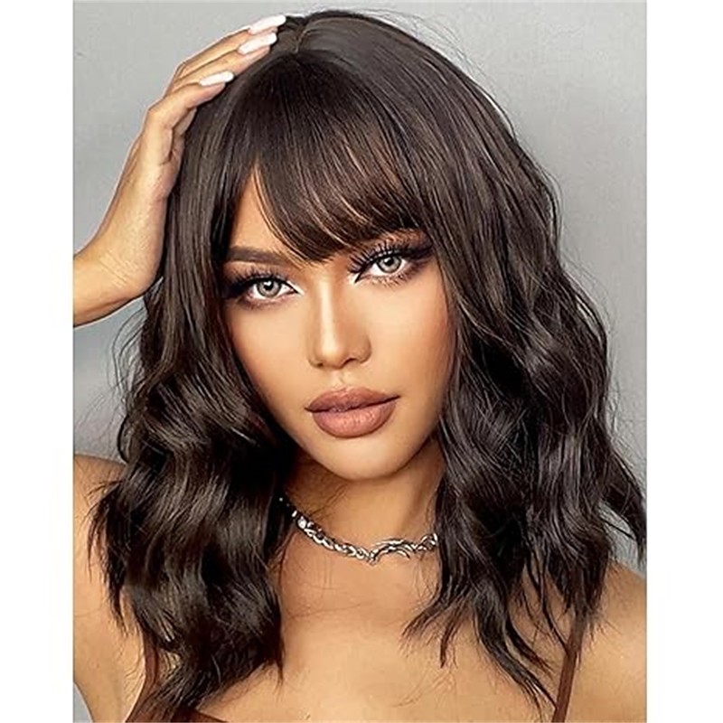 Synthetic Wig Curly With Bangs Machine Made Wig Short Light Brown Synthetic Hair Women's Soft Fashion Easy to Carry Brown