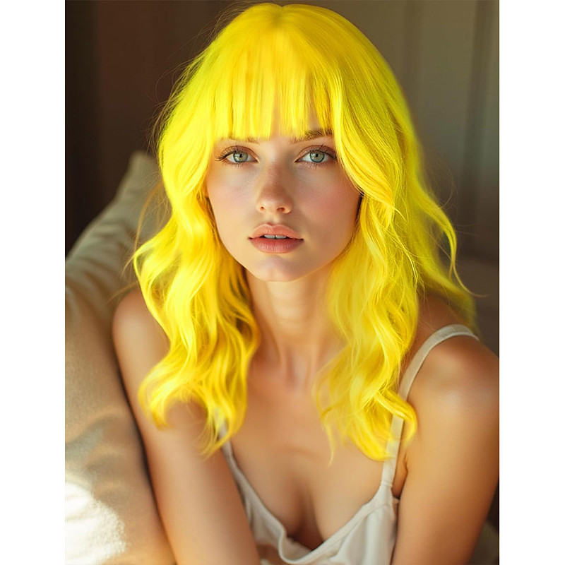 Carnival Wig Yellow Curly Bob Short Synthetic Festival Wig Mardi Gras Parade Cosplay Costume Hair for Women