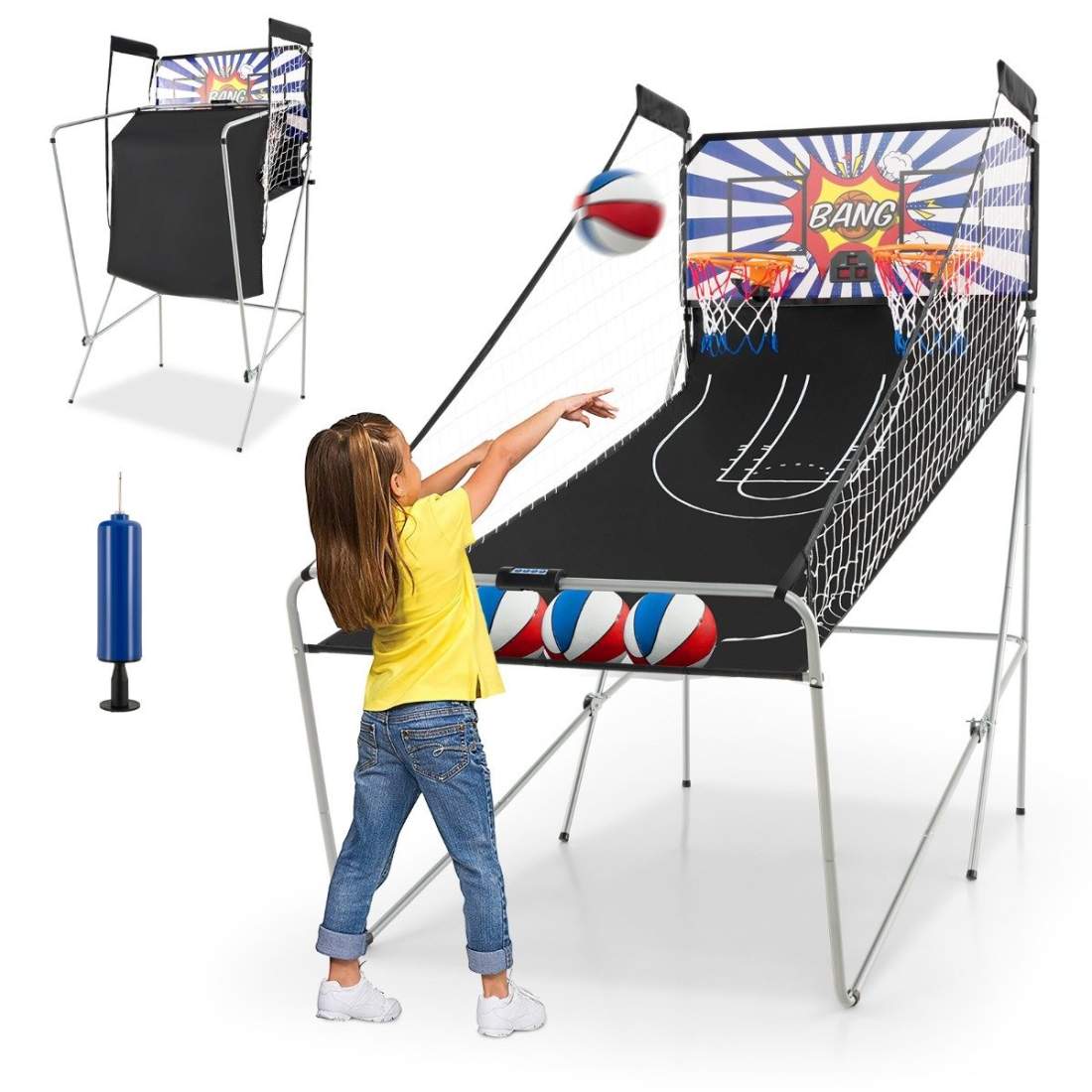 Sammenfoldeligt 8-i-1 basketball arkadespil – dobbelte bøjler, elektronisk scoring