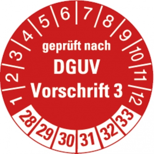 Dreifke® Prüfplakette geprüft nach DGUV Vorschrift 3 ab 28 in ro - 30 mm Folie selbstklebend, 500 St