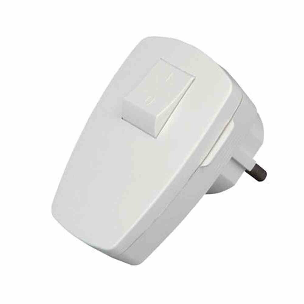 Kunststoff-Schutzkontakt-Stecker mit 2-poligem Wippenschalter, weiß