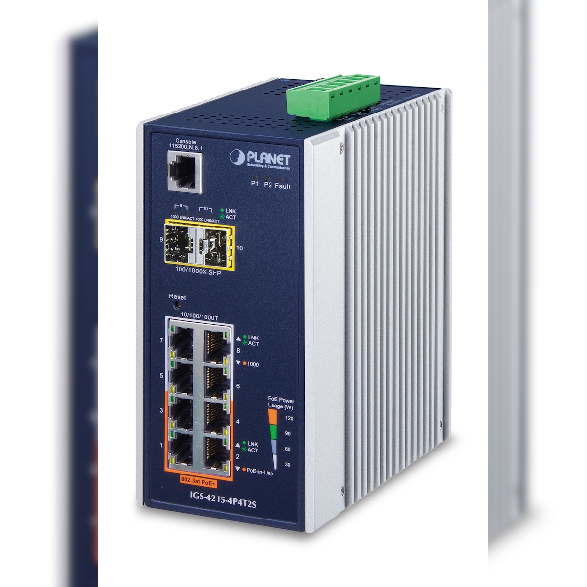PLANET industrial 4-Port 10/100/1000T Switch +4-Port 10/100 802.3at PoE + 2 100/1000 SFP Slots, PoE Budget 144 W, managed