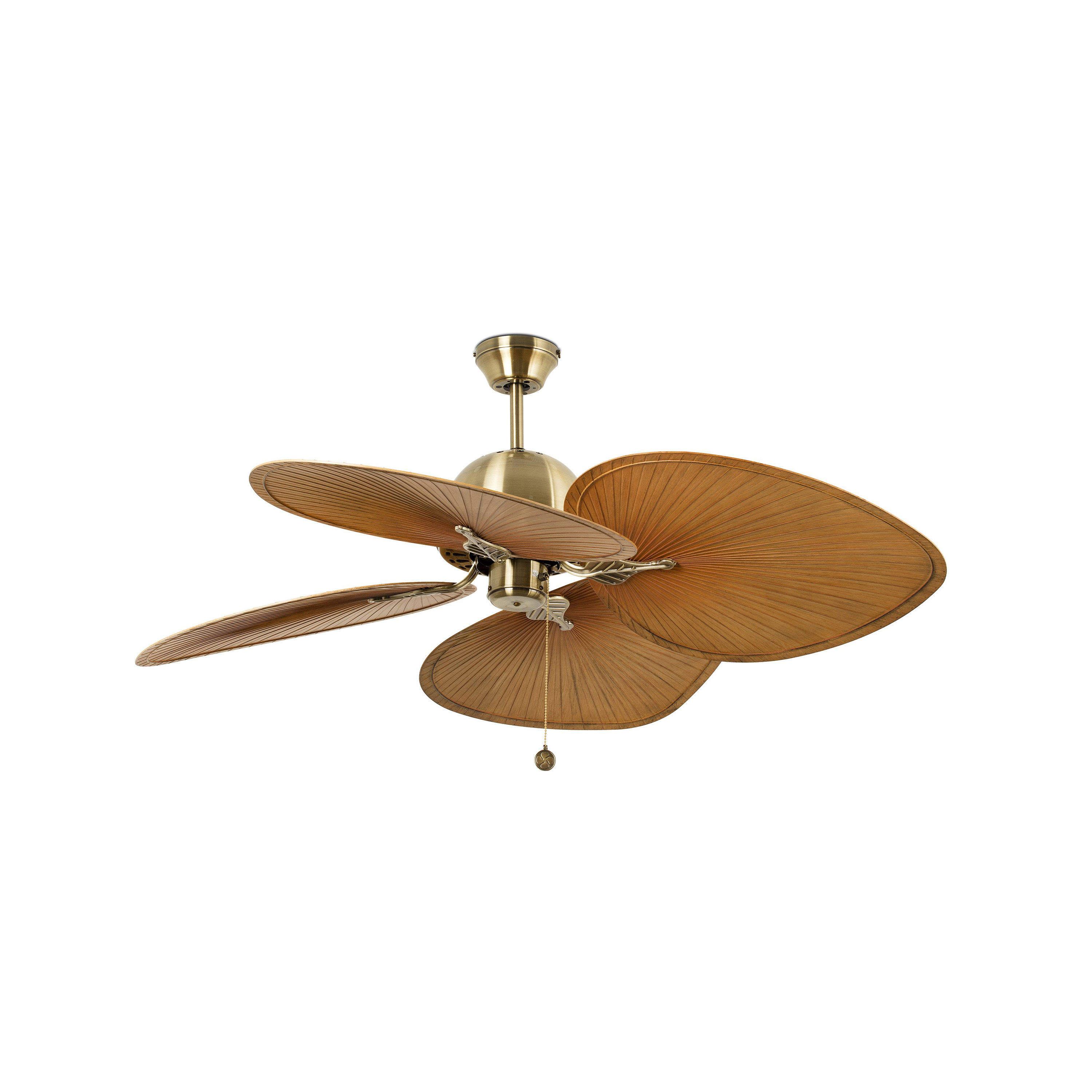 Faro Cuba - ventilateur de plafond avec interrupteur à tirette - Ø 132 cm - laiton antique et marron