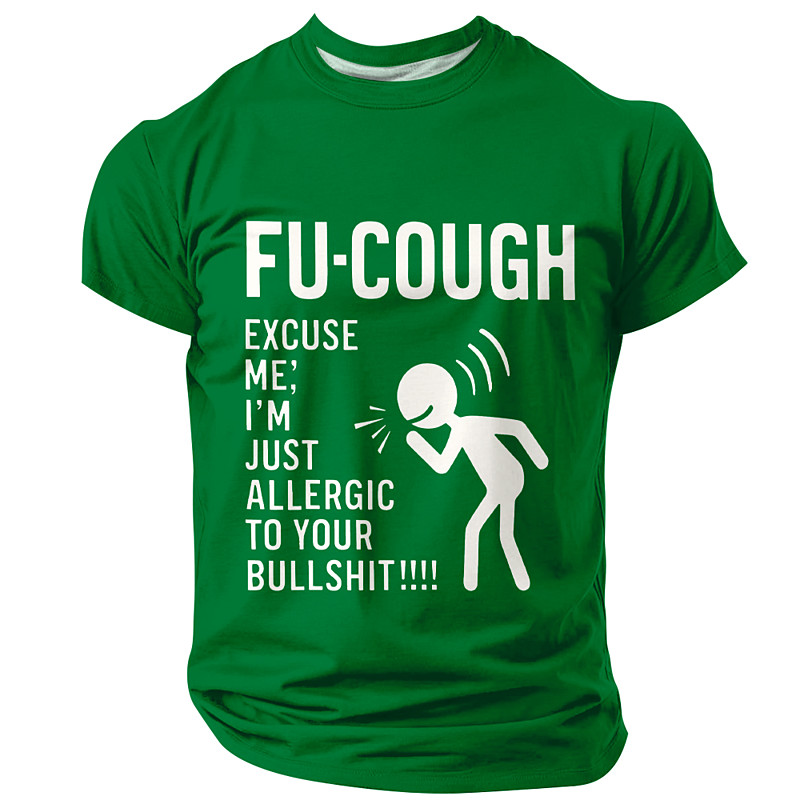 Funny T Shirt Fu Cough Excuse Me Im Just Allergic To Your Bullshit Sarcastic Humor Graphic Tee Men Red Short Sleeve Top Clothing Apparel S M L XL XXL XXXL