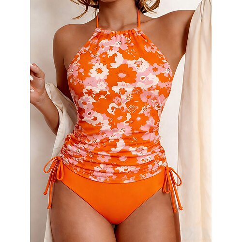 Per donna Tankini arricciato Costume da bagno 2 pezzi Floreale Protezione UV Elastico Senza Maniche Costume da Bagno Surf Immersione Nuoto Estate