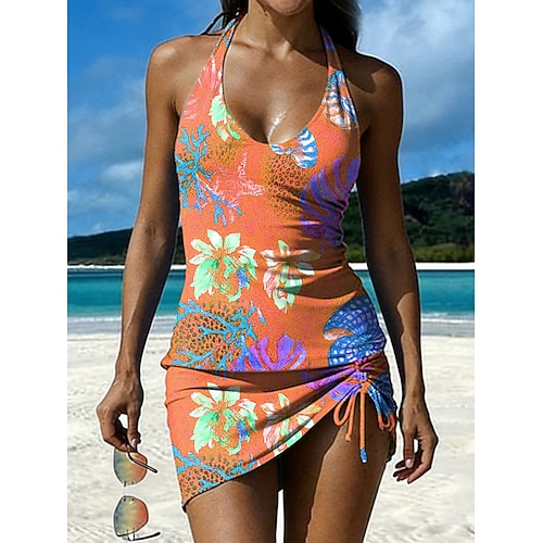 Per donna Costumi da bagno Tankini Gonna Costume da bagno All'americana Elegante Vacanza Floreale Grafico Senza Maniche Costumi da bagno