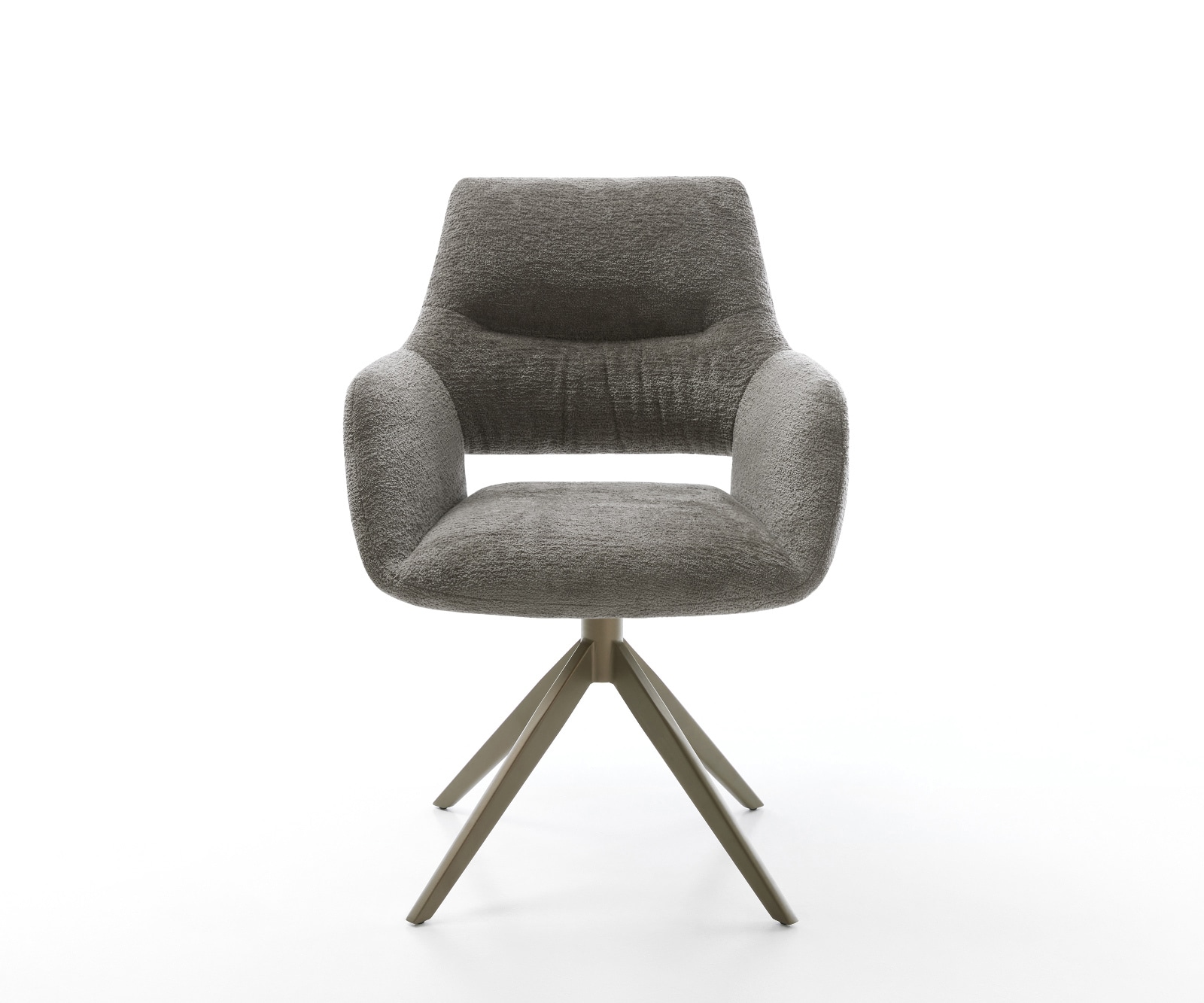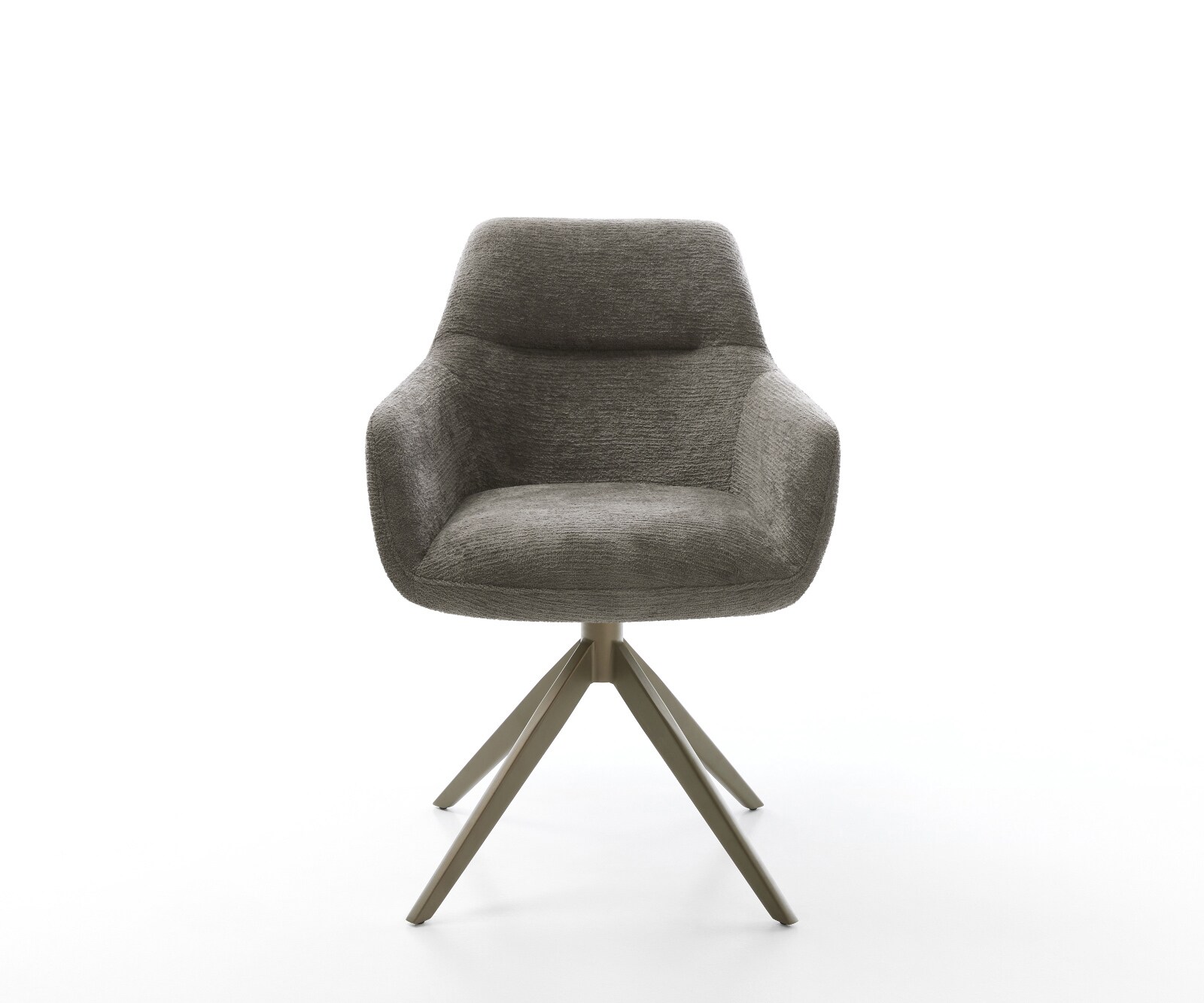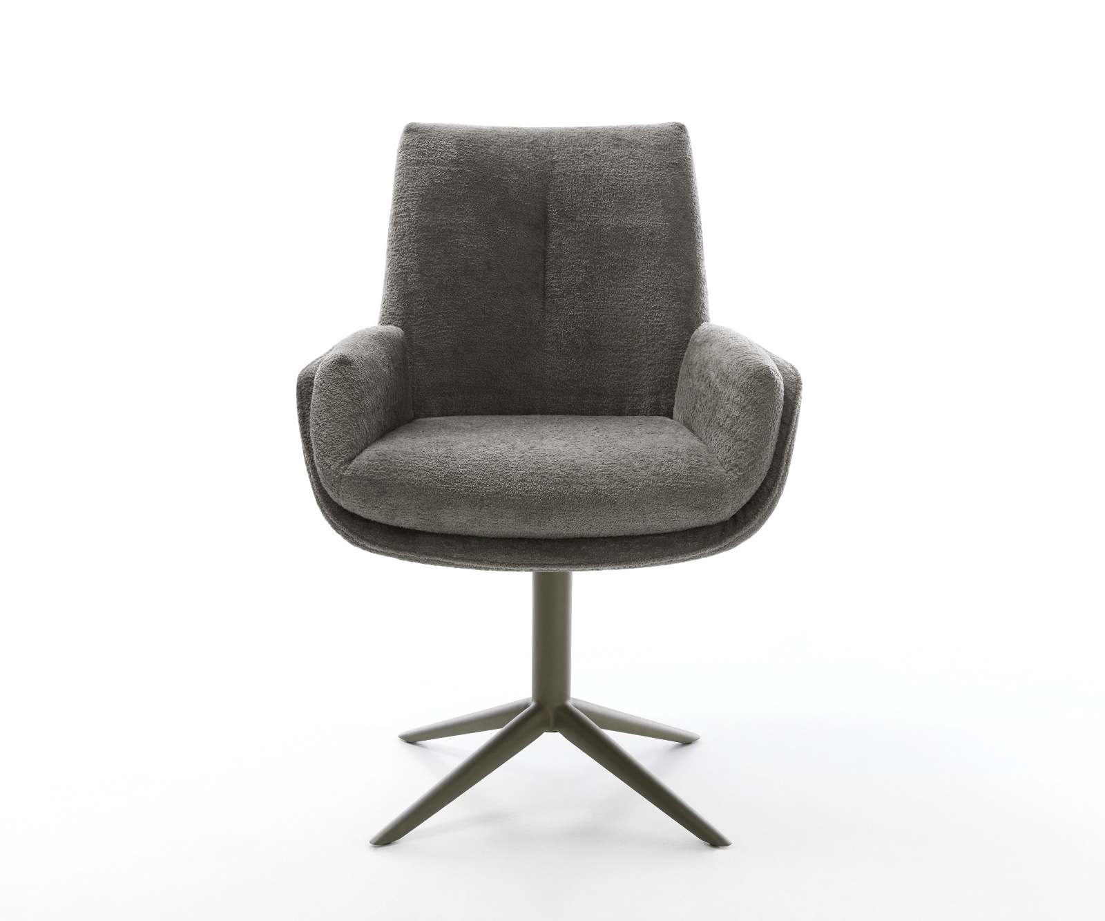 DELIFE Draaistoel Alja-Flex met armleuning bouclé zacht mud kruispoot afwerking met titanium 360° draaibaar rocker-functie pocketveer kern