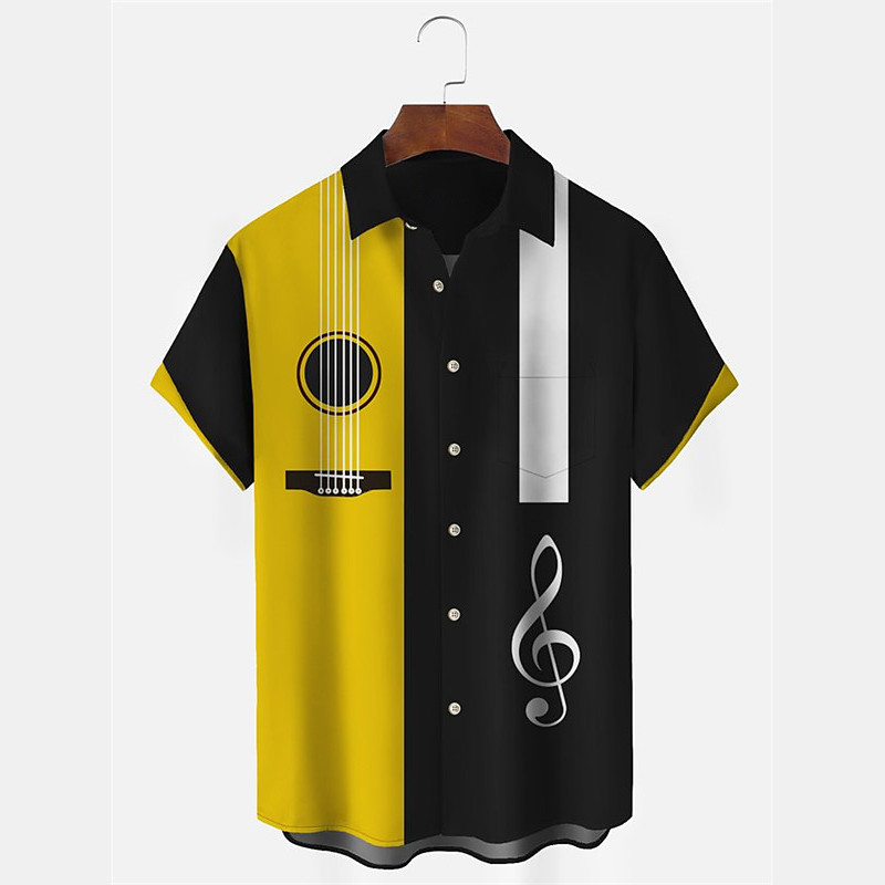 Men's Boardmasters Guitar Musical Instrument Shirt Summer Shirt Button Up Shirt Short Sleeve Vintage Retro Outdoor Vacation Dailywear Summer Spring Turndown 3D Print Collared Shirts Front One Pocket