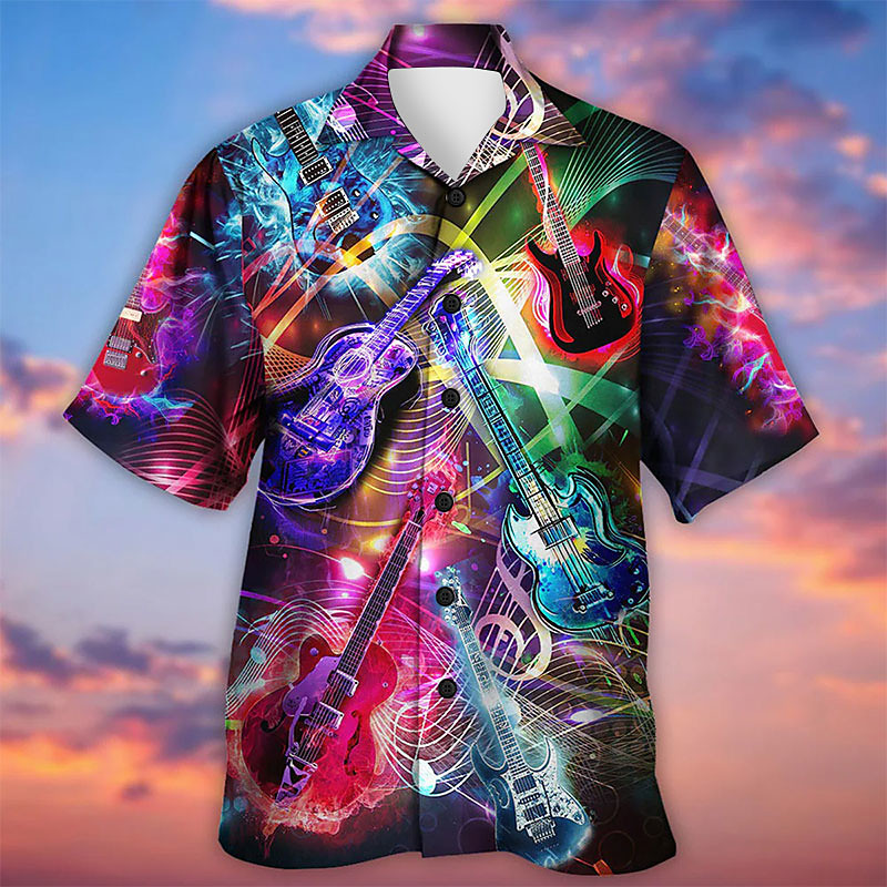 Men's Boardmasters Musical Instrument Shirt Summer Hawaiian Shirt Button Up Shirt Short Sleeve Designer Beach Holiday Spring Summer Turndown 3D Print Black Blue Dark Green Light Purple Purple