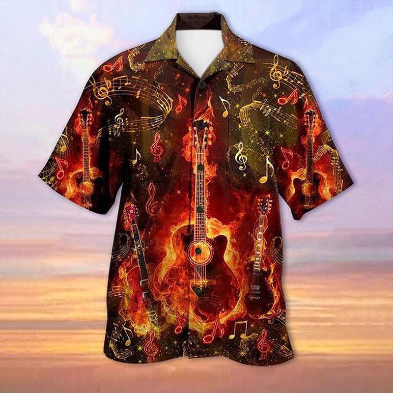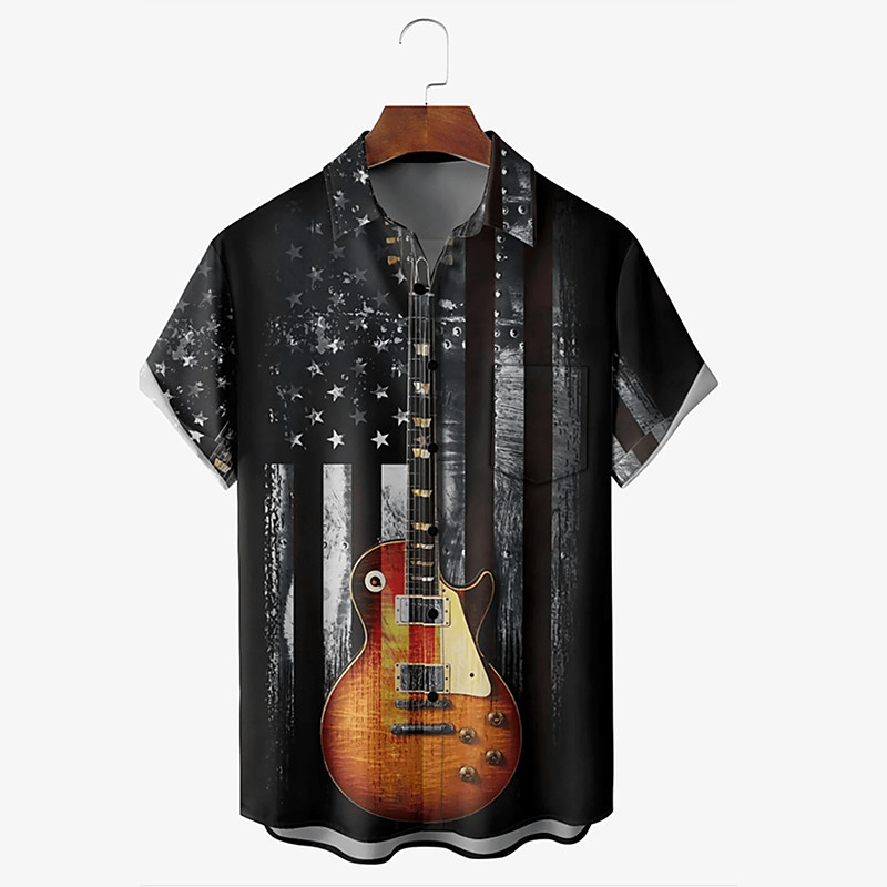 Men's Boardmasters Guitar Musical Instrument Shirt Summer Shirt Button Up Shirt Short Sleeve Fashion Casual Outdoor Vacation Dailywear Summer Spring Turndown 3D Print Collared Shirts Front One Pocket