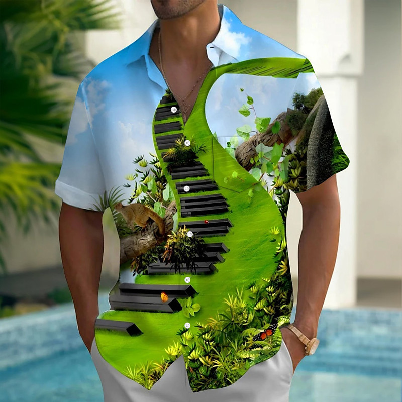 Men's Boardmasters Piano Musical Instrument Shirt Summer Shirt Button Up Shirt Short Sleeve Fashion Casual Outdoor Vacation Dailywear Summer Spring Turndown 3D Print Collared Shirts Front One Pocket