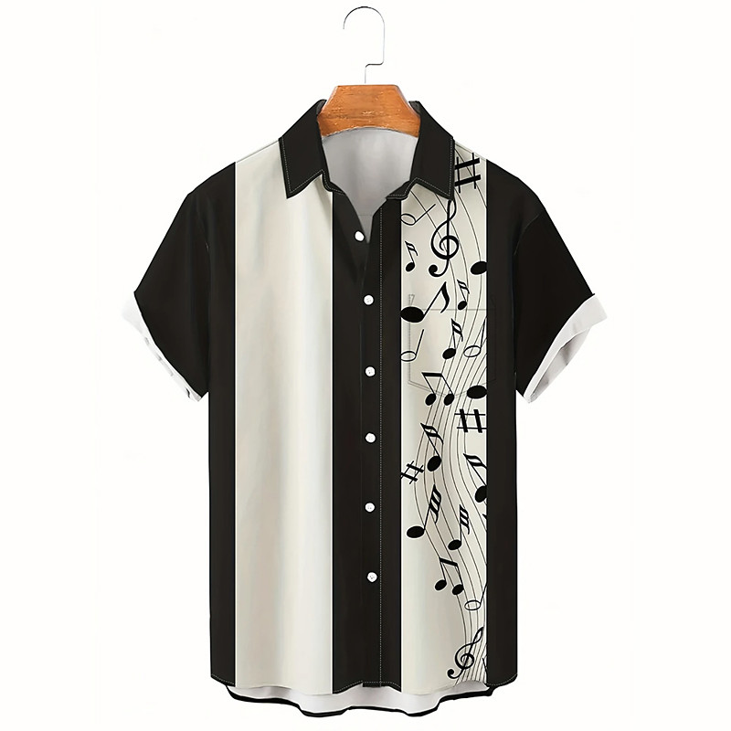 Men's Boardmasters Music Notes Shirt Button Up Shirt Short Sleeve Fashion Streetwear Designer Street Casual Daily Summer Spring Turndown Print Black Black / Brown Orange WhiteWhite Gray