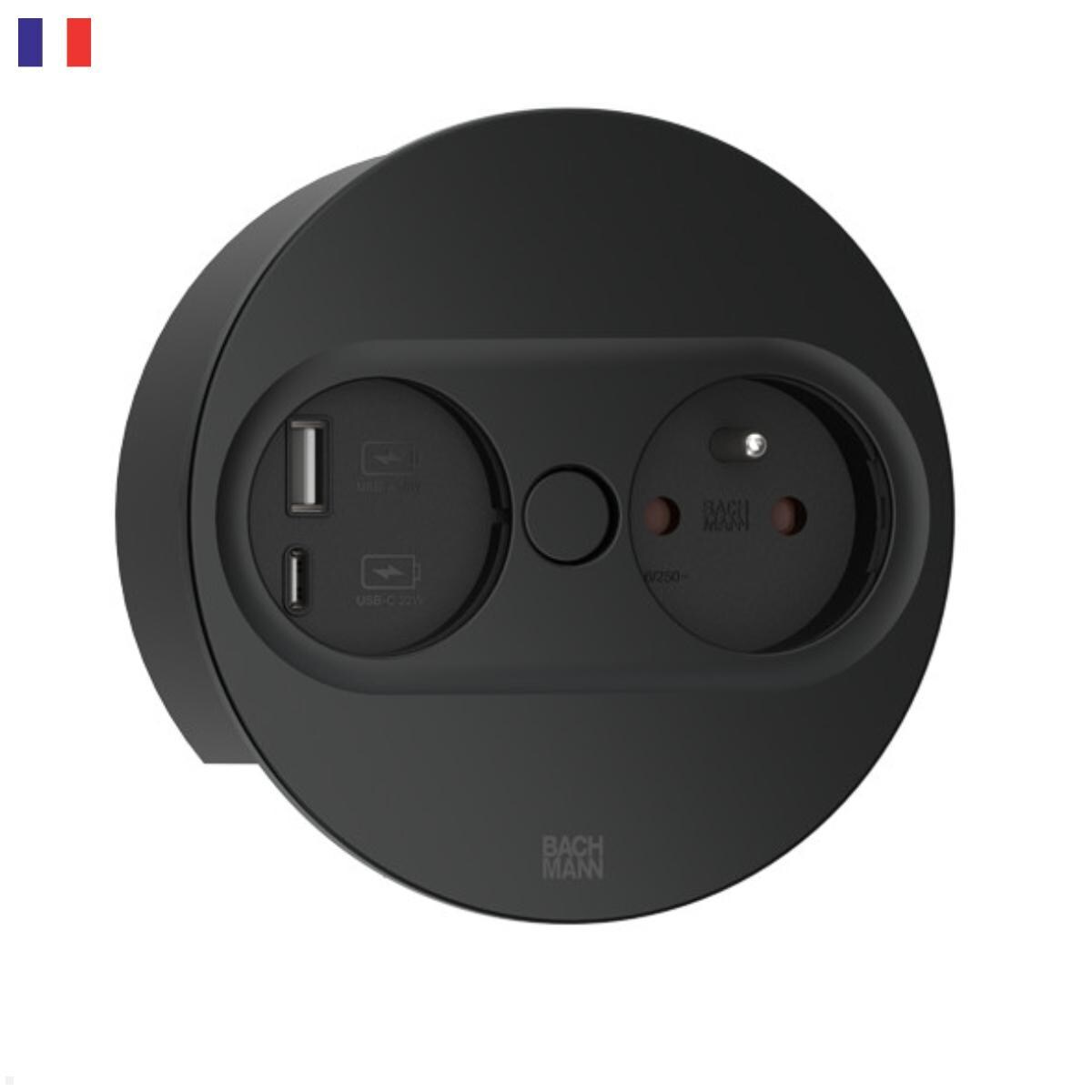 Bachmann TWIST 2 1x FR Steckdose UTE 1x USB-Charger A/C, rund (946.106) schwarz
