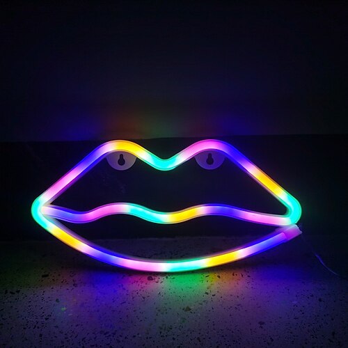 luci al neon a led con labbra sexy appese alle pareti, luci pendenti, luci decorative per la festa in camera da letto al chiuso di San Valentino, batteria AAA, alimentatore USB a doppio uso