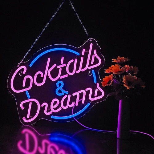 Insegna al neon per cocktail, decorazione da parete, insegna a LED da bar dimmerabile, alimentata tramite USB, per interni, camera da letto, soggiorno, ristorante, casa, bar, feste, pub, night club,