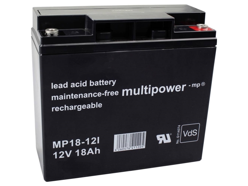 multipower MP18-12I Lyijyakku 12 V 18 Ah Lyijyakku (B x K x S) 181 x 167 x 76 mm M5-ruuviliitäntä Huoltovapaa, vähäinen itsepurkautuminen, VDS-sertifiointi