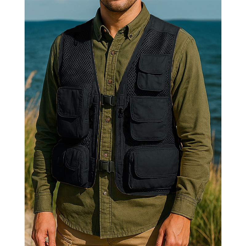 Men's Fishing Vest Hiking Vest Sleeveless Vest Outdoor Lightweight Breathable Zipper Multiple Pockets Nylon Black Army Green Navy Blue Hunting Fishing Climbing