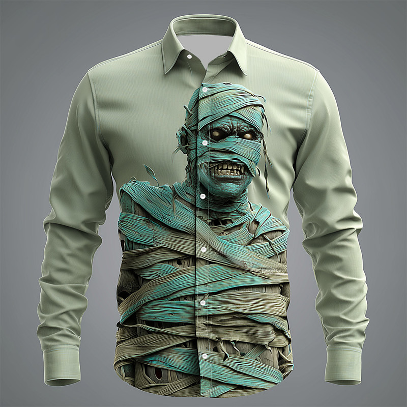 Halloween Men's Zombies Mummy Shirt Button Up Shirt Long Sleeve Dark Gothic Style Holiday Streetwear Spring Fall Turndown 3D Print Collared Shirts Light Green Green