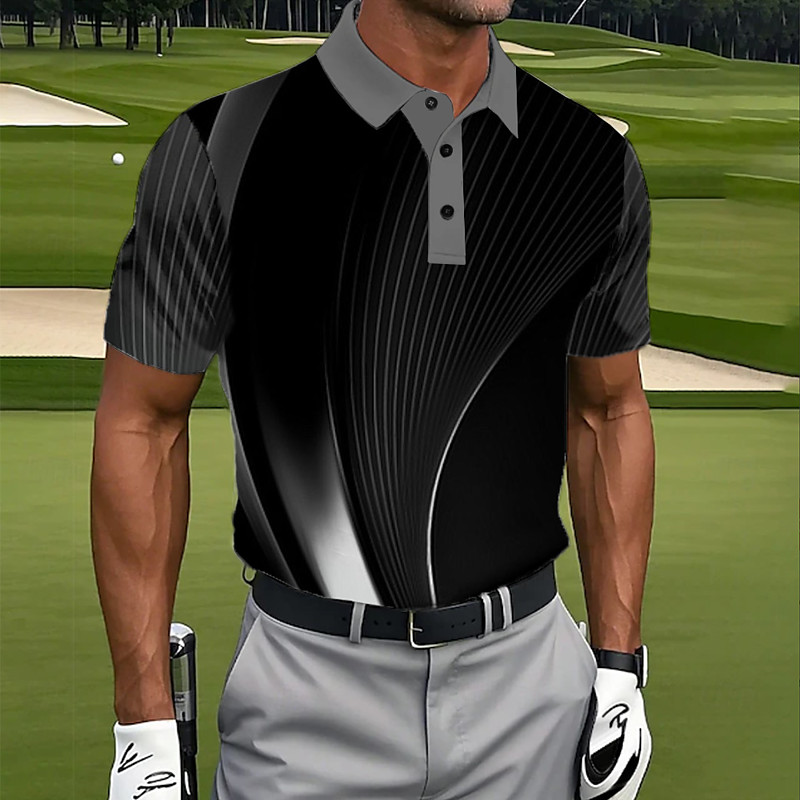 Men's Geometic Polo Golf Polos Shirts Short Sleeve Polo Shirts Lapel Casual Athleisure 3D Print Buttons Summer Black Purple