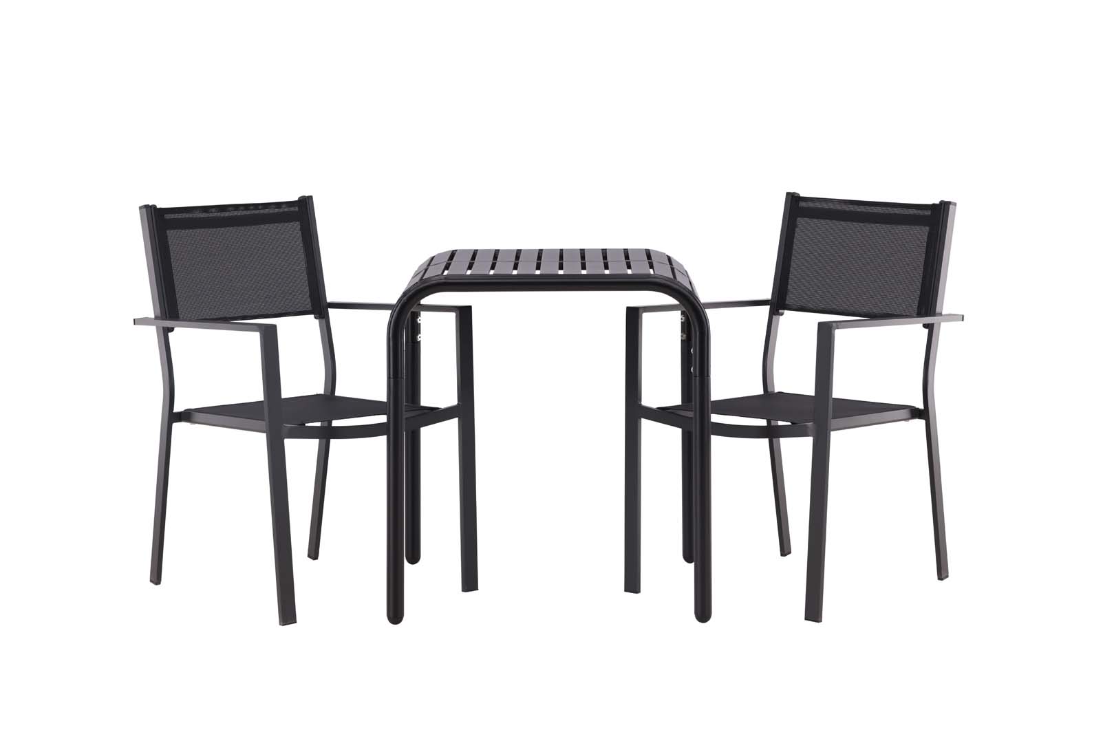 Borneo Gartenset Tisch, 2 Stühle schwarz.