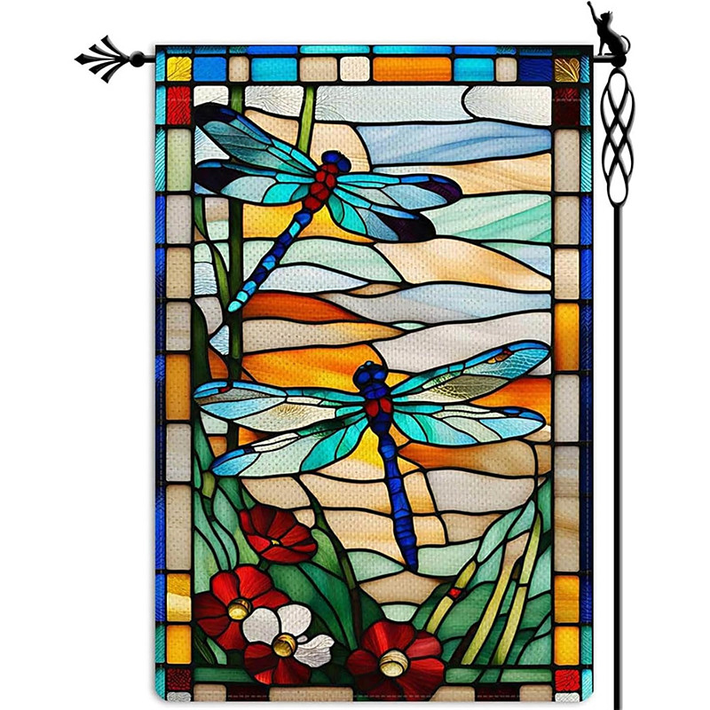 Flag 12 x 18 Inch Yard Flags, Stained Glass Hummingbirds Small Garden Flags for Outside, Outdoor Flags, Holiday Garden Flags