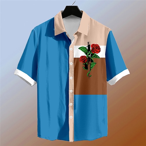 camicia hawaiana stampata in 3d a quadri floreali con rose romantiche per San Valentino, resort estivo, a maniche corte, per vacanze al mare dalla s alla 3xl