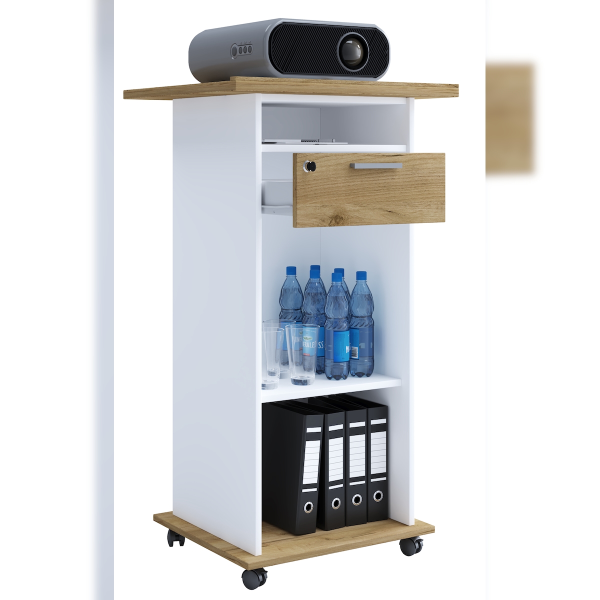 VCM Hifi-Möbel Neta Weiß / Honig-Eiche H. 108 x B. 60 x T. 50 cm