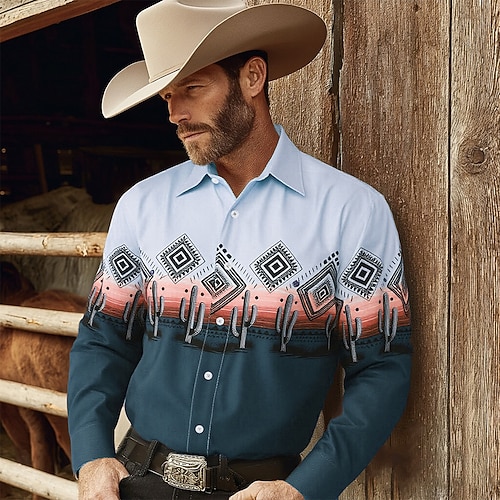 Per uomo Cactus Chiave greca Meandro Camicia Camicia Western Camicia da cowboy Manica Lunga Vintage Retrò All'aperto Vacanza Abbigliamento da lavoro Primavera Autunno Collo ripiegato Stampa 3D