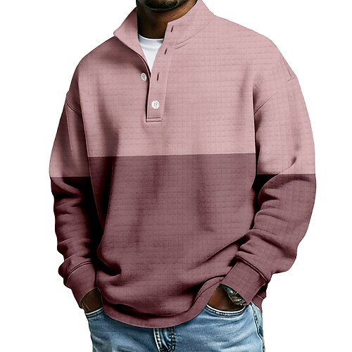 Per uomo Plaid Nido d'ape Felpa Moda Quotidiano Classico Casual Collo alla coreana Zip a un quarto All'aperto Casa Ufficio Lavoro Blu Viola Verde Cachi Con zip Autunno Inverno progettista S M L XL