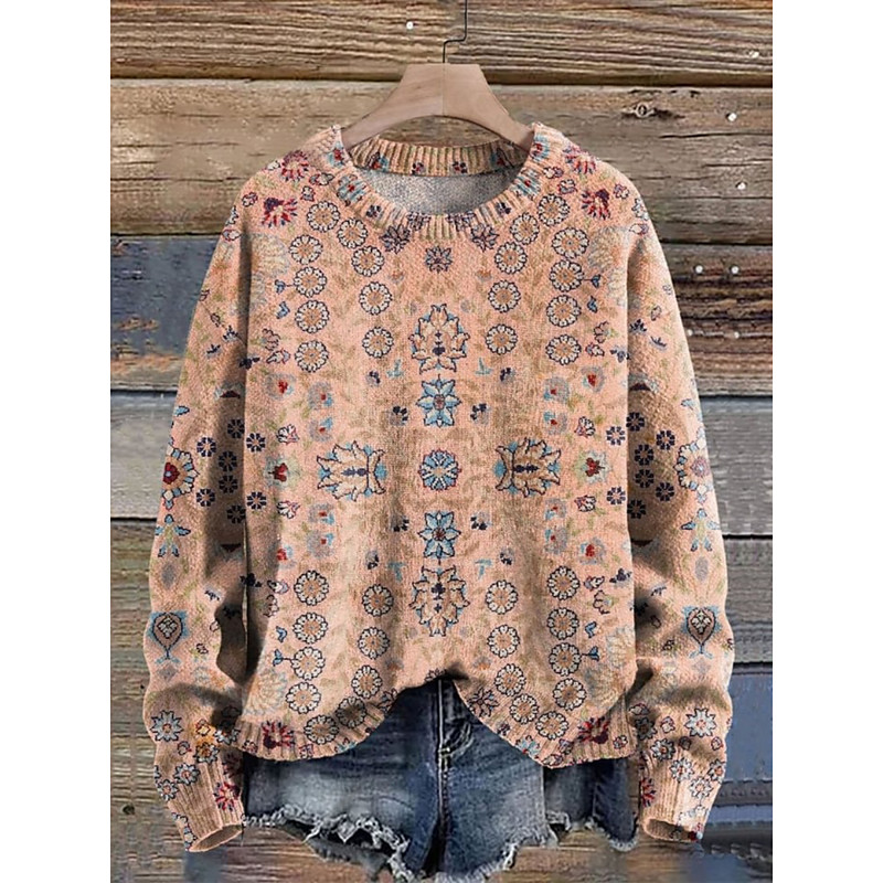 Women's Sweater Casual Soft Floral Stylish Modern Long Sleeve Crew Neck Regular Tops Daily Holiday Print Blue Green Apricot Spring Fall Winter