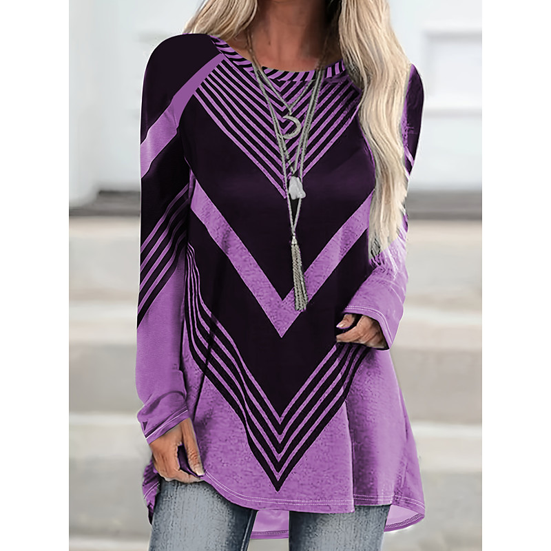 Women's T Shirt Graphic Geometry Vintage Stylish Modern Long Sleeve Crew Neck Regular Tops Daily Print Blue Purple Green Gray Fall Winter