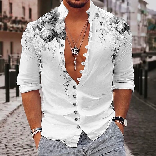 Per uomo Floreale Camicia Camicia con Bottoni Manica Lunga Moda Streetwear Designer All'aperto Casuale Quotidiano Estate Primavera Autunno Collo alla coreana Stampato Giallo Rosa Viola Verde Grigio