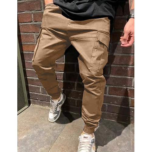 Per uomo Pantaloni cargo Jogging Pantaloni Pantaloni casual A cordoncino Vita elastica Multi tasca Liscio Comfort Morbido Alla caviglia Esterno Informale Giornaliero Di tendenza Streetwear Nero Verde