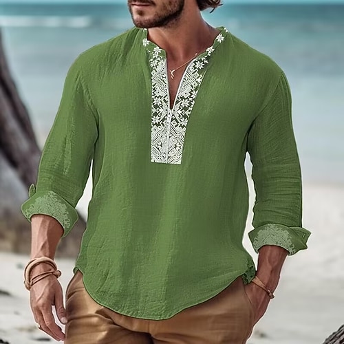 Per uomo Etnico Camicia Camicia di lino Manica Lunga Moda Streetwear Designer All'aperto Quotidiano Uscire Primavera Estate Collo alla coreana Stampato Blu Nero Nero Giallo Verde chiaro Rosa