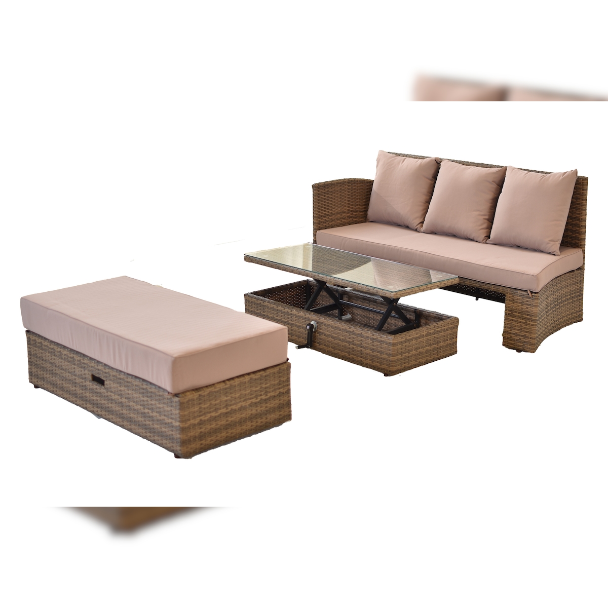 Merxx Riva Erweiterungsset, 1 Bank mit Lehne, 1 Bank, 1 Tisch, Aluminium, Natur