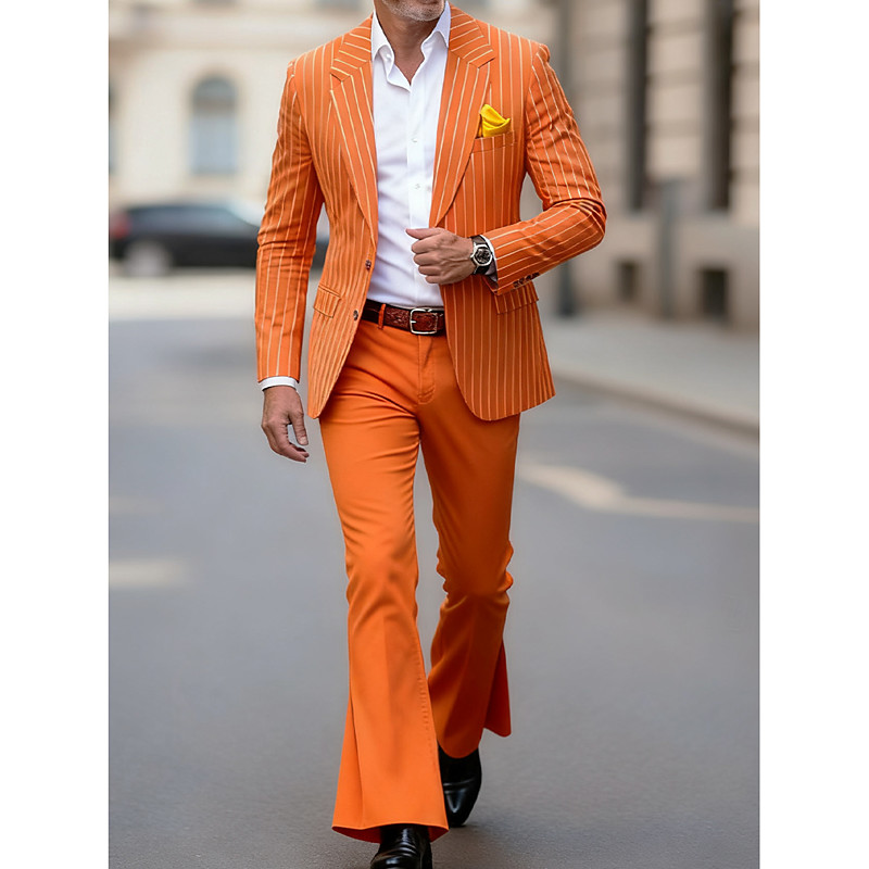 Men's BlazerDress Pants Blazer Suits Business Cocktail Party Wedding Party 2 Piece Fashion Casual Spring Fall Cotton Blend Stripe Pocket Buttons Comfortable Single Breasted Blazer Pink Purple Orange
