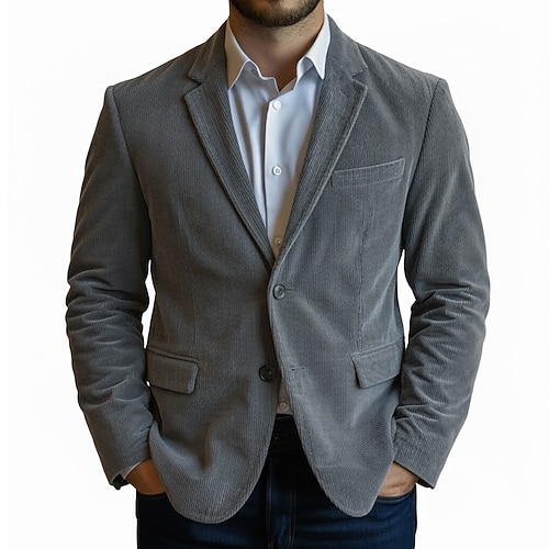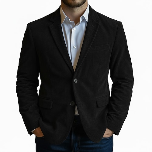 Per uomo Giacca in Velluto a Coste Giacca blazer Colletto ad incastro Retrò Classico Casual A righe Tinta unita Blazer Nero Marrone Verde Vestibilità su misura Monopetto Due Bottoni