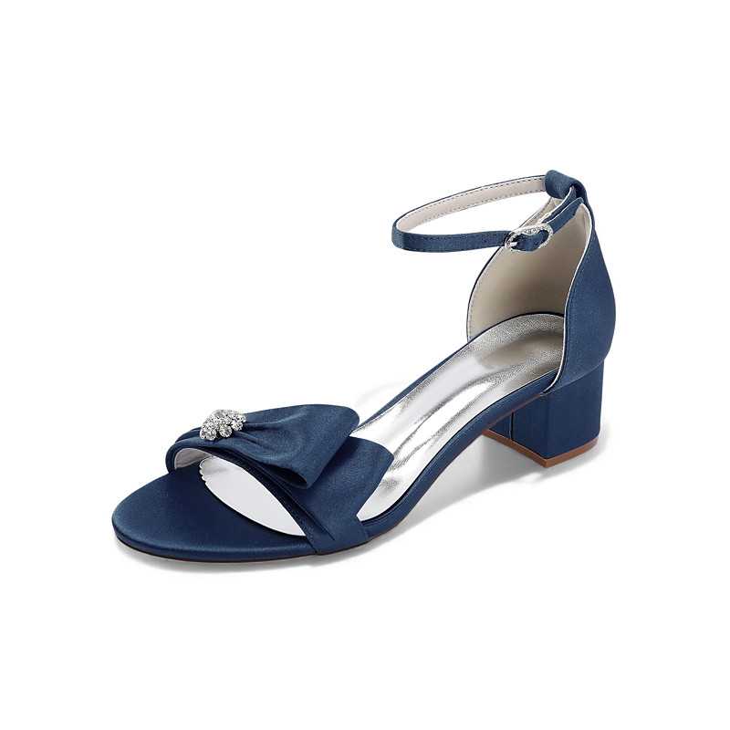 Women's Burgundy Satin Block Heel Sandals with Bow Rhinestone Detail - Elegant Comfort Dress Shoes for Mothers Attending a Chic City Wedding