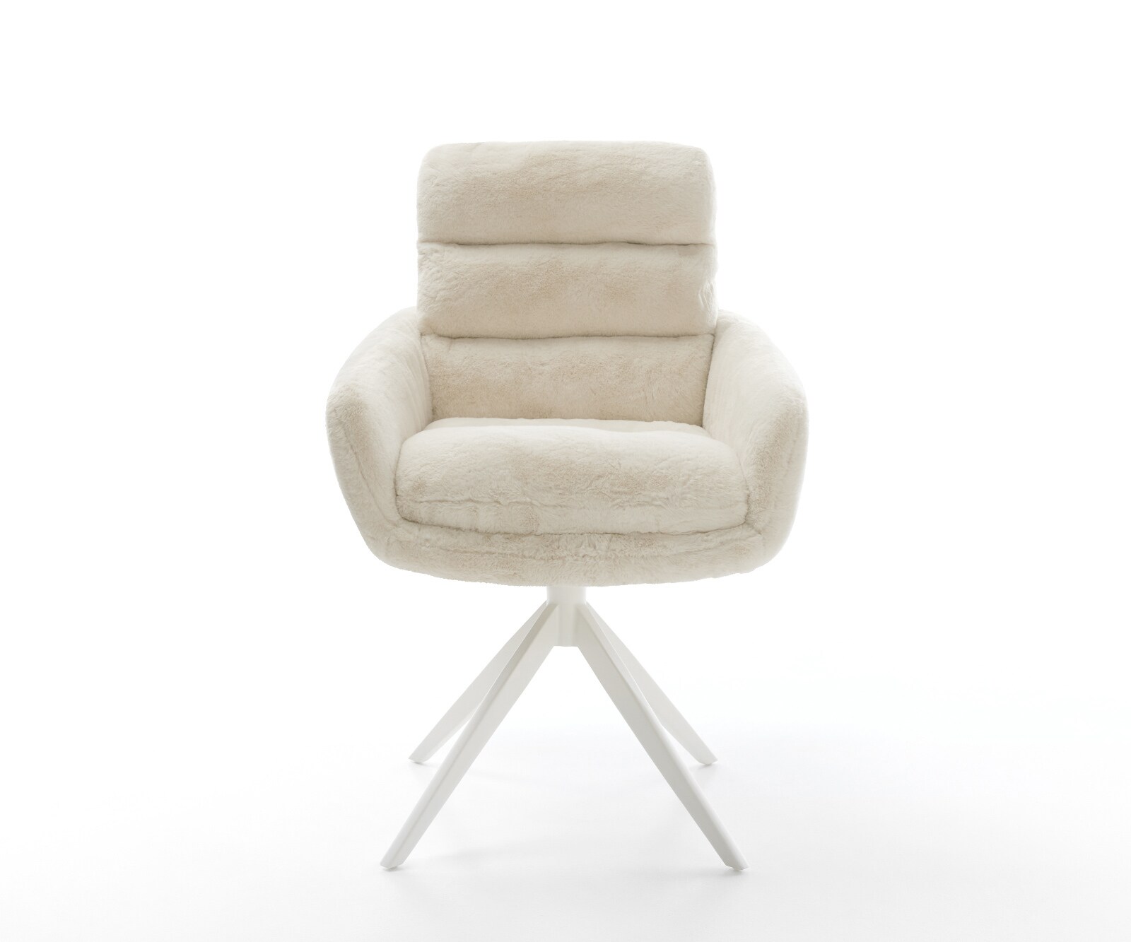 DELIFE Draaistoel Abelia-Flex met armleuning pluchen crème-wit kruisframe breed wit 360° draaibaar rocker-functie