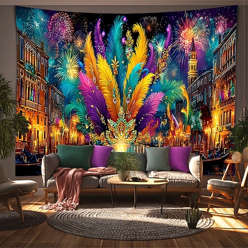 Martedì grasso arazzo Striscioni Coperta Maschera Piume Lusso Colorato 3D Da serata Soggiorno Sfondi di ripresa Stile Carnevale di Venezia Arredamento per la casa