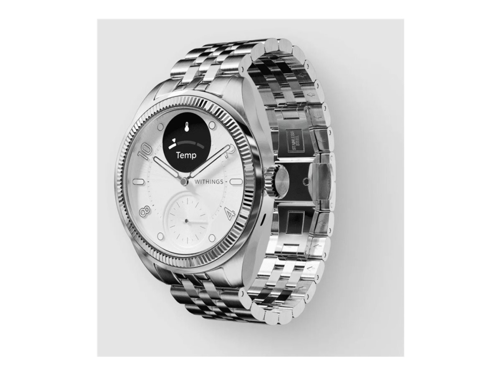 Withings ScanWatch Nova - Brilliant Edition - 39 mm - rustfrit stål - hybrid-smartwatch med bånd - metal - display 0.63 - grayscale - Bluetooth LE, Wi-Fi - 42 g - titangrå
