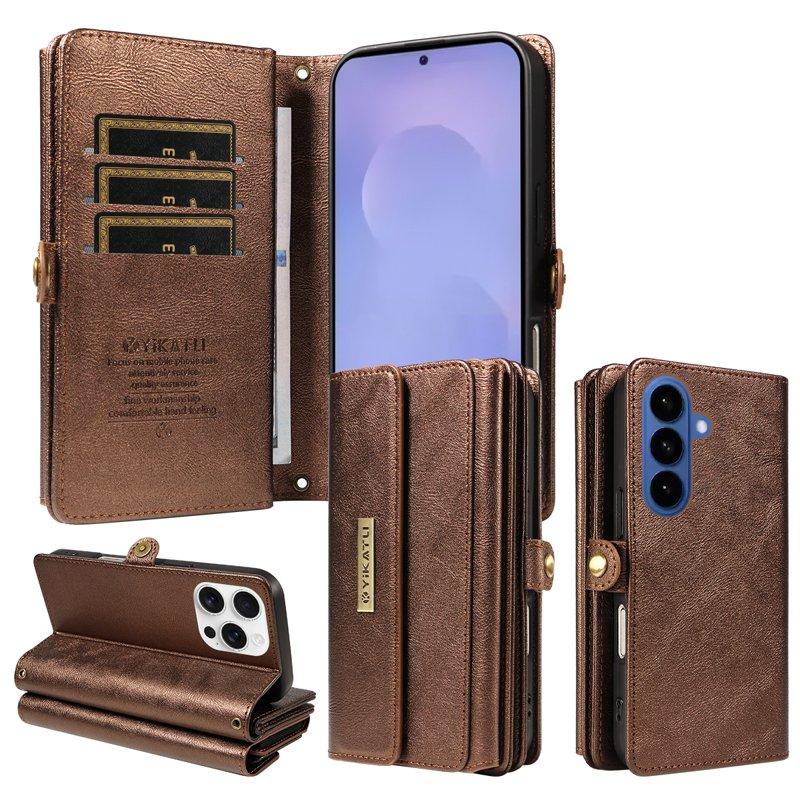 YIKATU Samsung Galaxy S26 Plånboksfodral Konstläder Med Axelrem - Brun