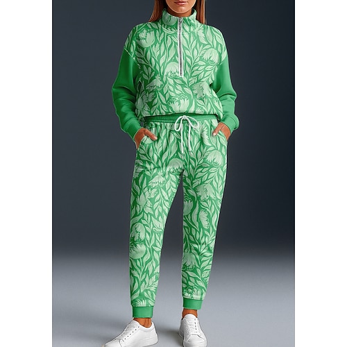 Per donna Maglia Tuta da Ginnastica Set di Abbigliamento Sportivo Baggy Floreale Completo Abbigliamento Autunno Verde Lavoro All'aperto Viaggio Leggero Di tendenza Manica Lunga Sport Abbigliamento