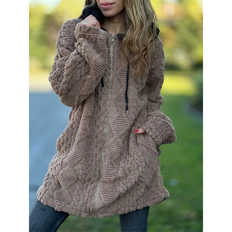 Women's Winter Coat Sherpa Jacket Comfortable Breathable Zipper Pocket Casual Plain Vacation Street Casual Daily Wear Zipper Short Hooded Regular Fit Long Sleeve Outerwear Black Wine Khaki Spring Fall