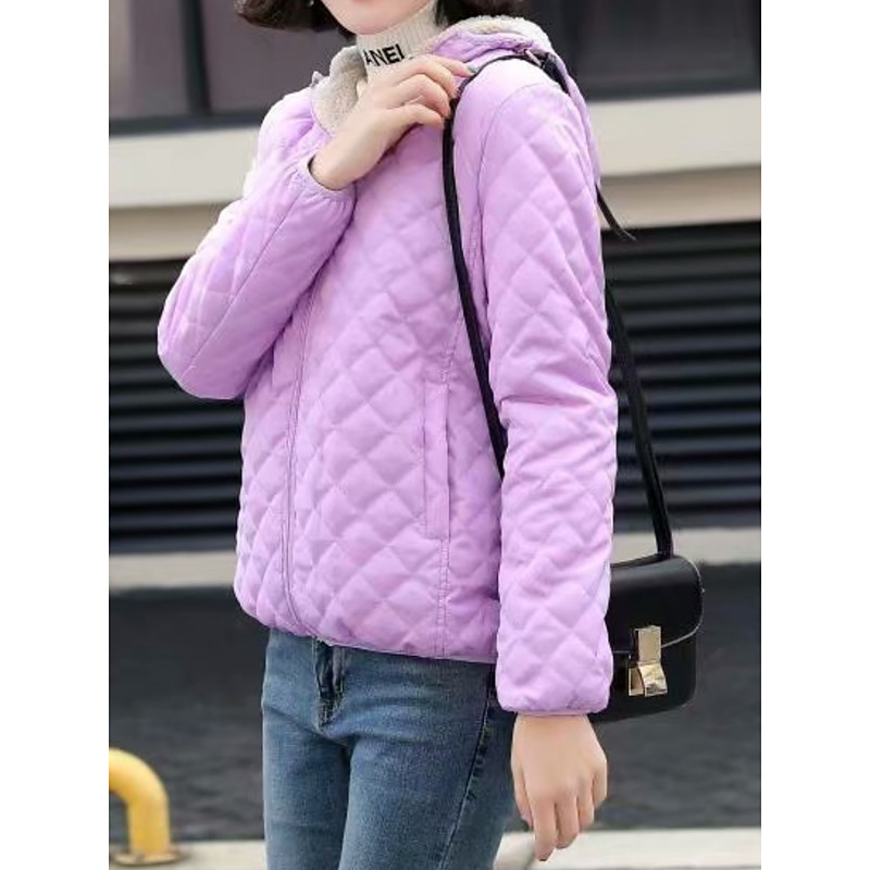 Women's Winter Coat Down Jacket Warm Comfortable Zipper Pocket Casual Plain Vacation Casual Daily Wear Going out Short Stand Collar Regular Fit Long Sleeve Outerwear Black Wine Coffee Fall Winter