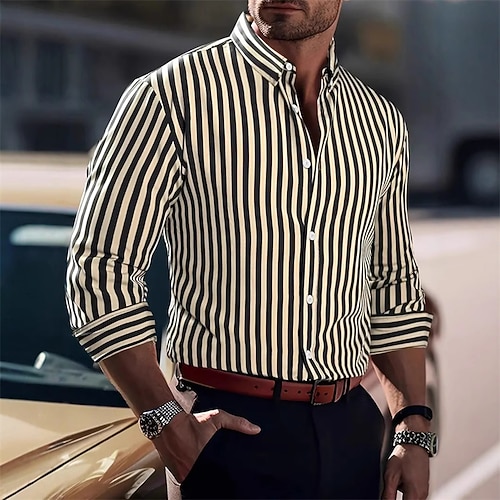Herren Hemd Sommerhemd Freizeithemd Knopfhemd Rote Blau Grün Kaki Dunkelblau Langarm Streifen Revers Urlaub Hawaiianisch Button-Down Bekleidung Polyester Mode Lässig Bequem