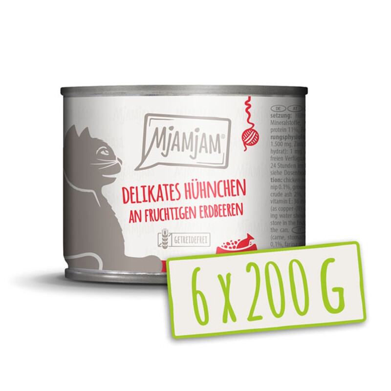 MjAMjAM Conserves pour chat au poulet et fraises - 6 x 200 g