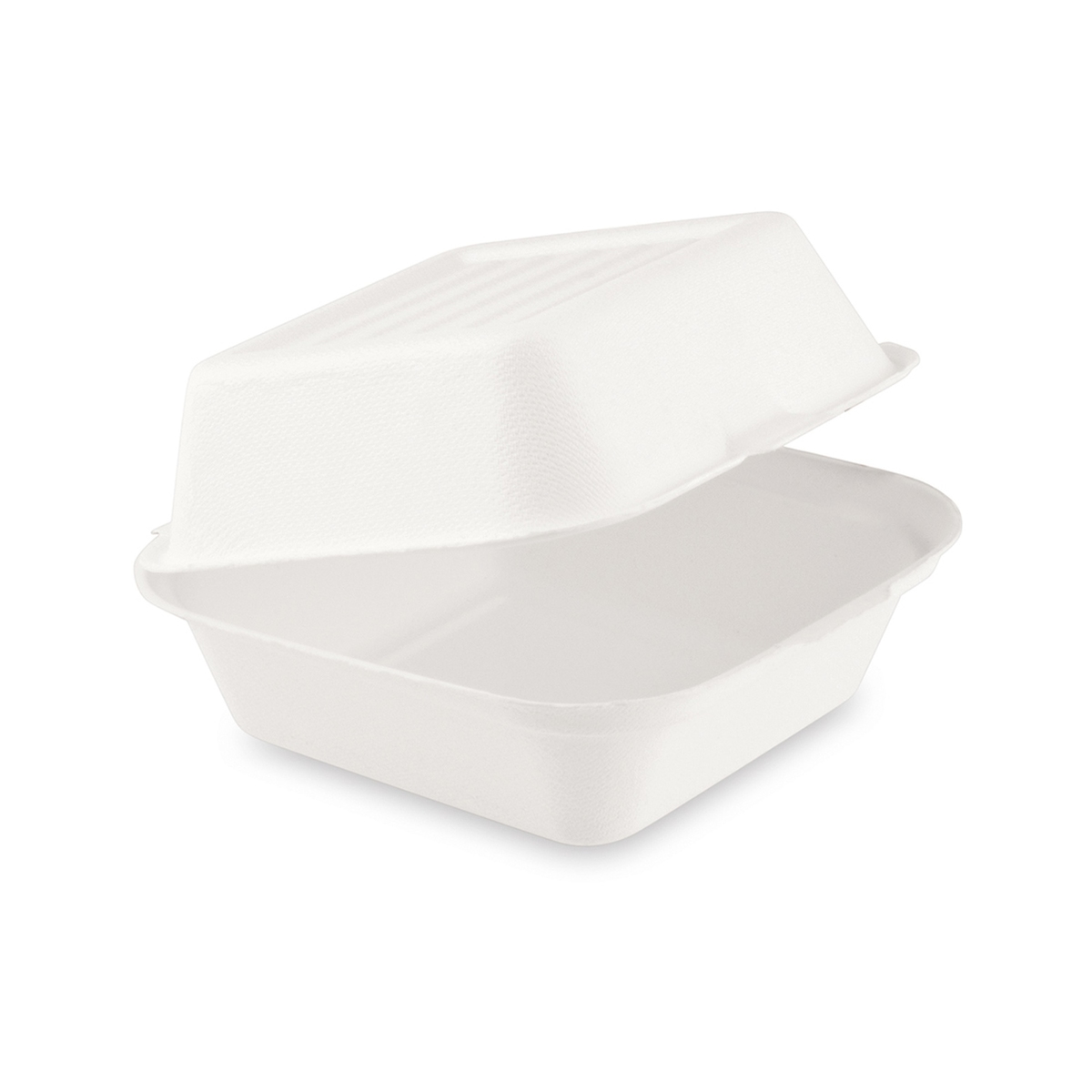 VEPATIM 50x Bio Hamburgerbox Sandwichbox aus Zuckerrohr kompostierbar 152x150x78mm
