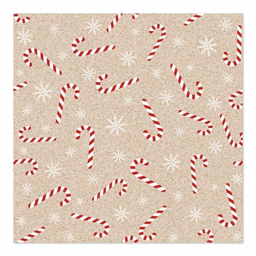 Papstar 300 Servietten, 3-lagig 1/4-Falz 33 cm x 33 cm natur `Candy Canes` aus recyceltem Papier