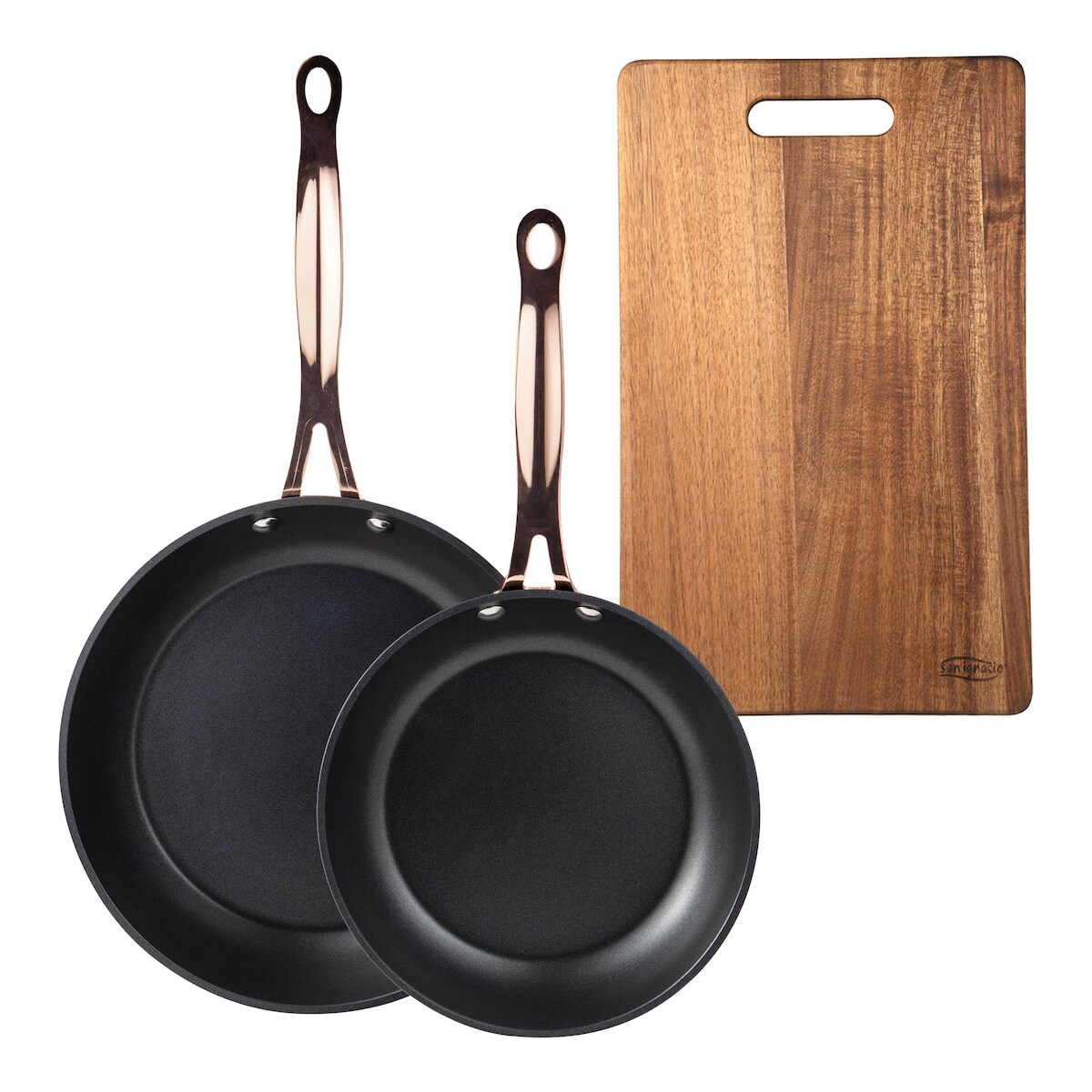 BERGNER - Set aus 2 Pfannen Ø20/24 cm aus geschmiedetem Aluminium Schwarz Matt mit Schneidebrett 40,3x25,2x2,5cm Holz